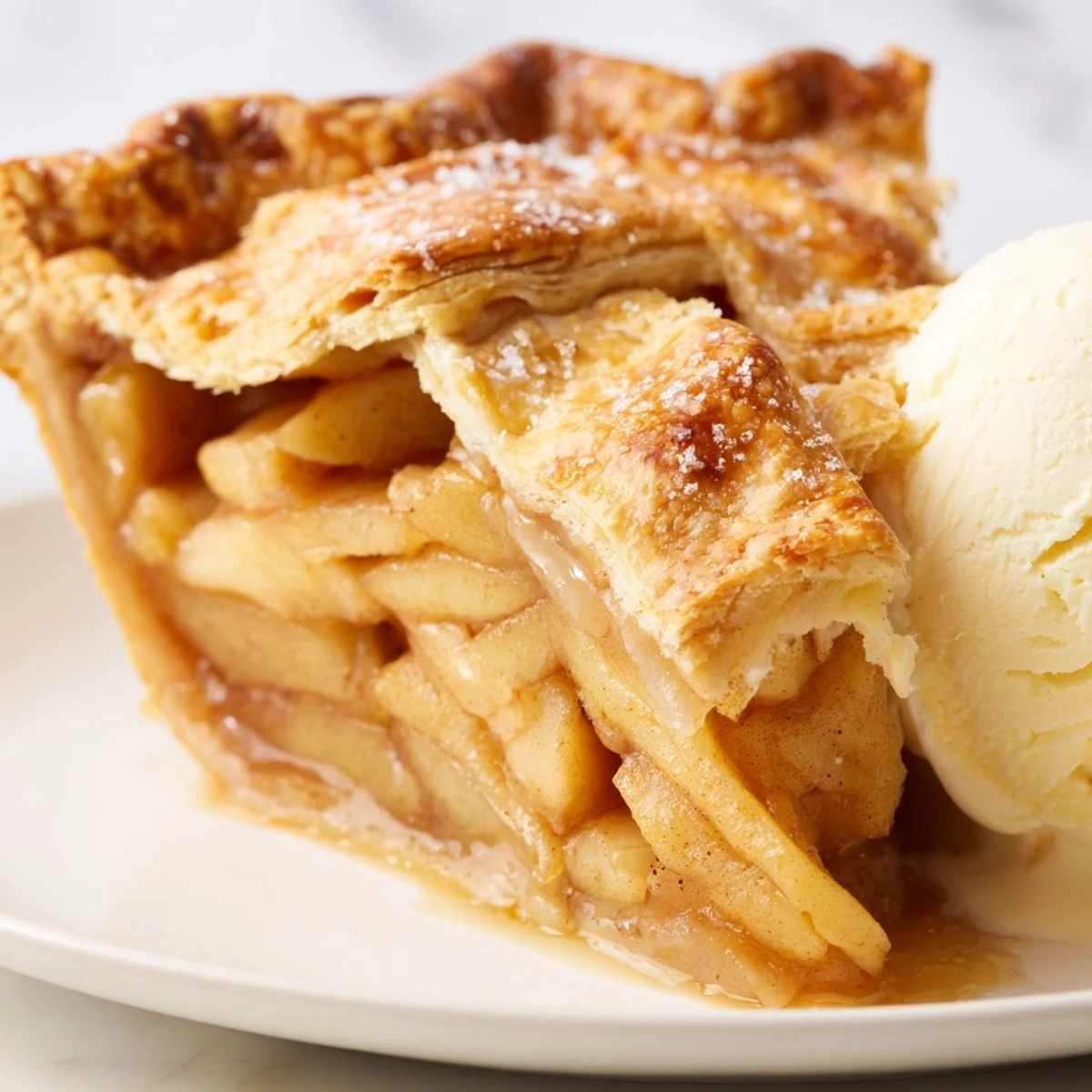 This beloved American dessert combines tart apples with warm cinnamon and nutmeg, all baked inside a tender, flaky butter crust. The filling balances sweetness from brown and granulated sugar with bright lemon juice, while the handmade pastry delivers that irresistible golden crunch.