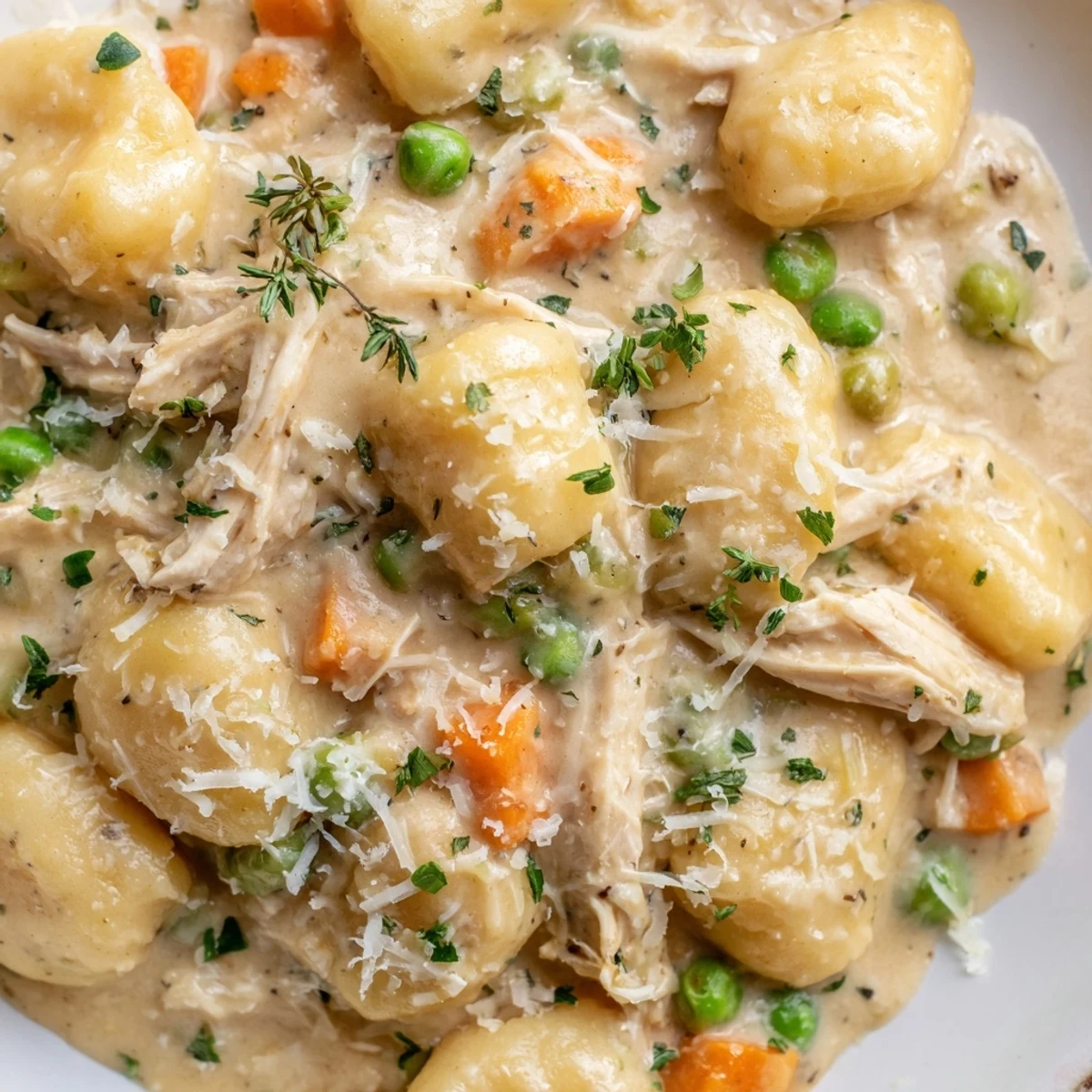The first time I made this, I was running late and staring at a rotisserie chicken from the grocery store. Something about the idea of traditional pot pie felt like too much work for a Tuesday night, so I started improvising with whatever was in the pantry. When I dropped those store-bought gnocchi into the bubbling creamy sauce, I honestly wasn't sure if it would work. Then I took that first bite—pillowy little dumplings swimming in the most velvety, comforting sauce I'd ever made.
